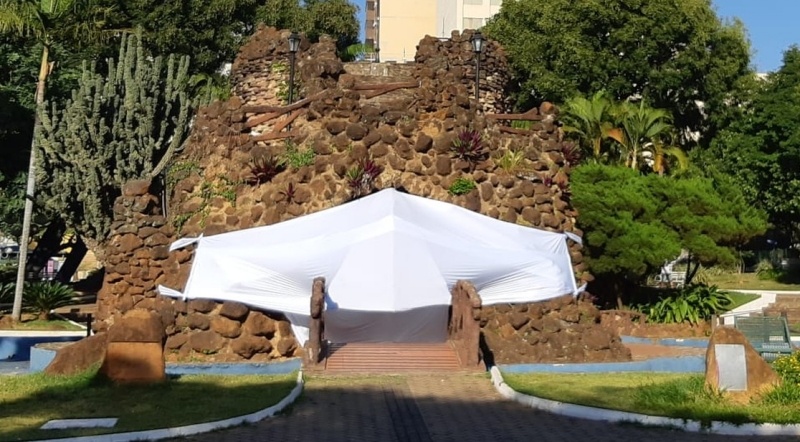 A Prefeitura de Limeira (SP) usou uma estratégia inusitada para conscientizar a população sobre a prevenção à Covid-19. Um dos principais pontos turísticos da cidade, a Gruta da Paz, recebeu nesta quinta-feira (30) uma máscara gigante.