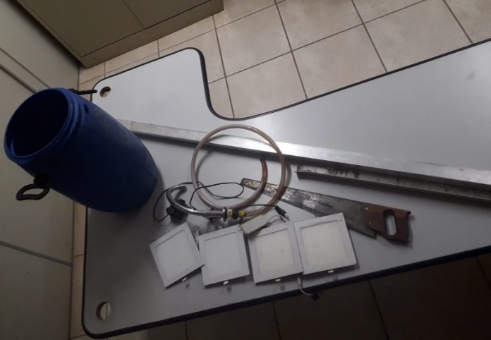 A vítima com apoio de uma testemunha localizaram o suspeito próximo do local, porém o mesmo ao avistar a vítima abandonou os produtos do furto e evadiu se pela avenida sentido Cemitério Municipal. “Em patrulhamento logramos êxito em abordar o suspeito, que após reconhecimento da vítima e testemunha o indiciado recebeu voz de prisão em flagrante”, disse subinspetor Gomes.