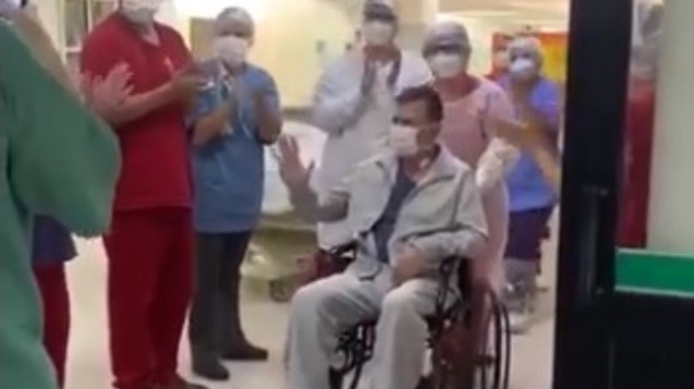 Cláudio é marido da pesquisadora e professora da Faculdade de Odontologia de Bauru – USP Marília Buzalaf, que enviou à equipe da TV USP um vídeo do momento em que deixam o hospital.