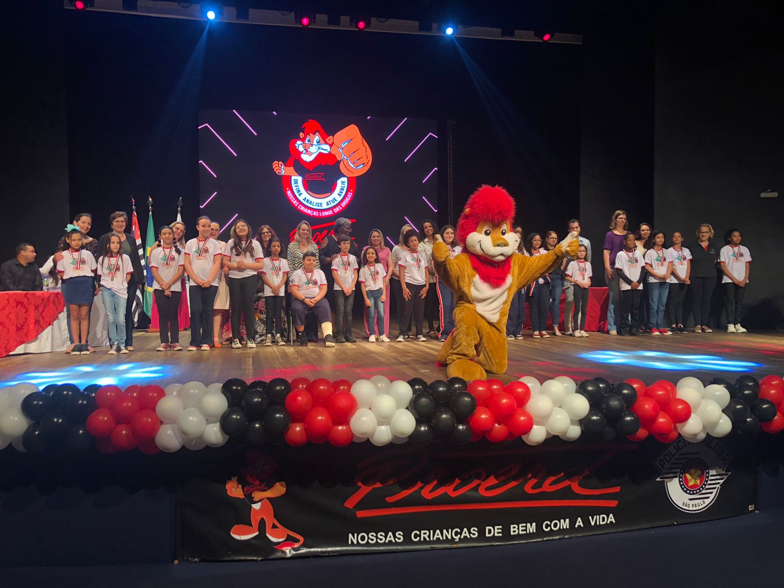 Na manhã desta terça feira (01), aconteceu no Teatro Estadual em Araras (SP) a formatura dos alunos do PROERD (Programa Educacional de Resistência as Drogas e a Violência). Cerca de 460 alunos do 5° ano concluíram o curso e os alunos que mais se destacaram receberam medalhas e certificados.