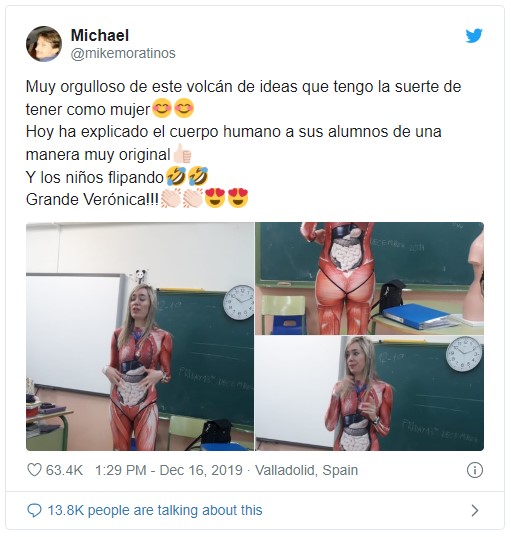 Uma colega gravou vídeos e fotografou a aula, postada no Twitter pelo marido de Verónica Duque, Michael, orgulhoso da criatividade de sua esposa. O tuíte teve milhares de compartilhamentos.