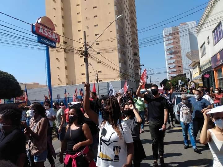 Movimentos sociais, políticos, representantes de ONGs e representantes do movimento negro fazem protesto no centro de Limeira (SP) em frente ao Assaí Atacadista, pedindo inclusão social e fim do racismo, na manhã deste domingo (15).