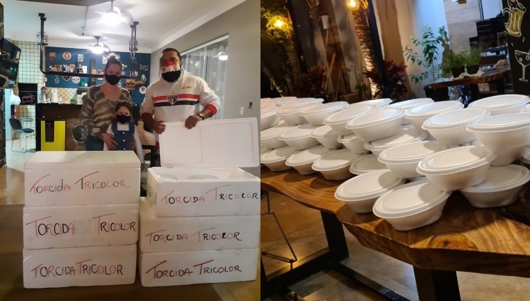 Exemplo disso, aconteceu nesta quarta-feira (7), o Cleandro Lima – Coordenador do Movimento Tricolor Social, foi procurado pela Milena Tofolo, que tem um propósito em particular, e contribuiu com um número expressivo de marmitas (veja foto acima), já prontas para entrega na cidade.