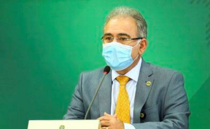 O ministro da Saúde, Marcelo Queiroga, durante declaração após reunião do Comitê de Coordenação Nacional para Enfrentamento da Pandemia da Covid-19, no Palácio do Planalto.