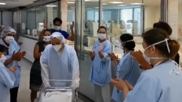 Uma recém-nascida que estava internada na maternidade Santa Joana, na Zona Sul de São Paulo (SP), foi aplaudida ao receber alta na tarde desta quinta-feira (09) após se recuperar da Covid-19.