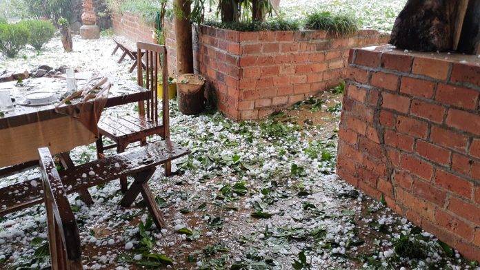 De acordo com informações recebidas pela nossa reportagem um restaurante no Morro Grande, que fica na zona rural, ficou completamente destruído por causa da chuva de granizo no começo da tarde deste domingo. O cenário de destruição é de chocar. O teto do estabelecimento foi destruído por completo. Assista ao vídeo abaixo: