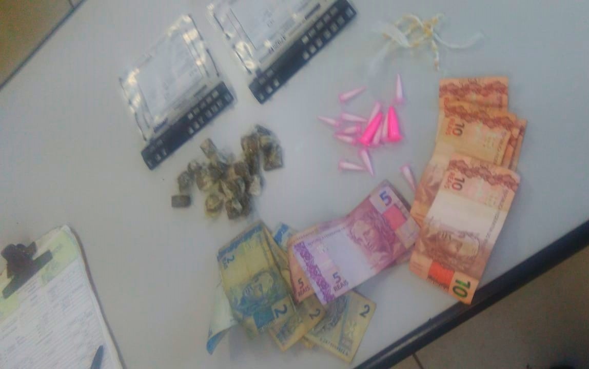 “De posse das informações nos deslocamos juntamente com a equipe da vtr I 36231, composta pelo cabo Isaías e soldado Crotti, e quando chegamos ao local o avistamos saindo de um terreno do outro lado da rua, de imediato foi abordado, em revista pessoal no seu bolso foi encontrado R$136,00 reais. Já no terreno foram encontrados em uma sacola 20 porções de maconha, 14 pinos com cocaína e 12 pedras de crack, indago ele confessou que estava vendendo as drogas no local”, disse cabo Roberto.