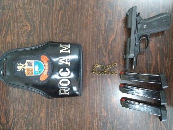 A arma apreendida estava registrada no nome do marido e quem portava no momento era sua esposa.