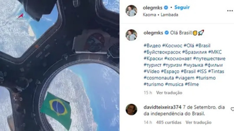 Na publicação, mandou um “olá” ao Brasil, exibindo a bandeira do país. Apesar de não indicar sua localização, ele possivelmente está sobre a região Norte do país. Em agosto, Oleg compartilhou um vídeo sobrevoando a Amazônia e, ao fundo, colocou para tocar a música “Mas que nada”, de Jorge Ben Jor.