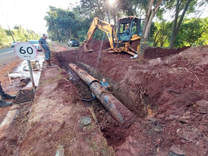 Reparo foi concluído na tubulação do Sabaz Leste na última segunda (23); abastecimento de água já foi normalizado.