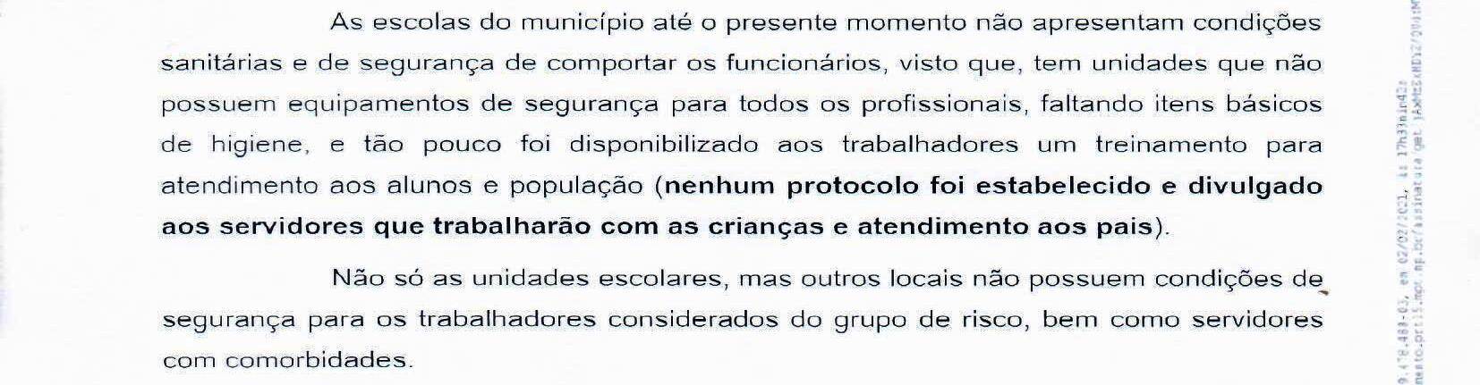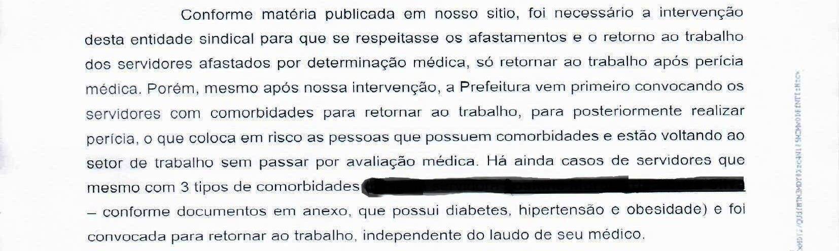 Segundo, o sindicado é desumano fazer com que pessoas que possuem comorbidades e são consideradas do grupo de risco.