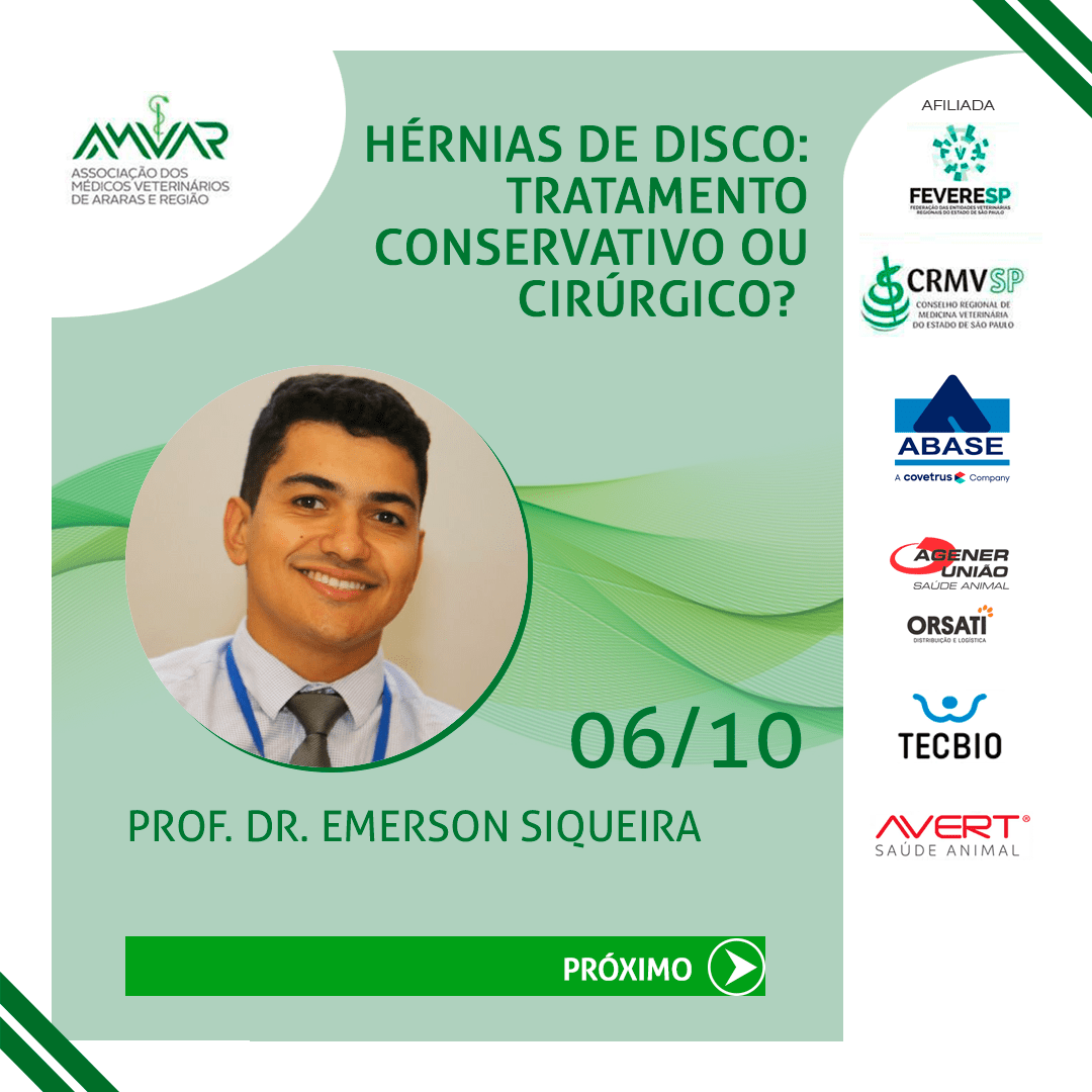 A Associação dos Médicos Veterinários de Araras e Região (AMVAR) retoma nesta semana as palestras do primeiro Super Simpósio de Ortopedia e Neurologia. O evento, em ambiente virtual, começou em setembro e prossegue até o próximo dia 20, com a expectativa de reunir mais de mil profissionais da área de todo o País.