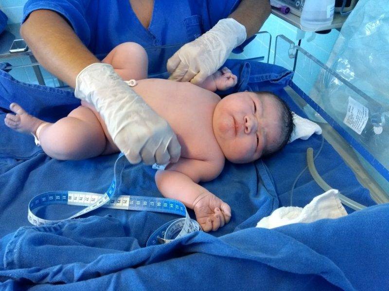 A gestação foi de quase 40 semanas e a criança de 58 centímetros nasceu saudável, após uma cesárea durante a manhã. “O último ultrassom que eu fiz eu não sabia o peso, foi só para saber o sexo, depois não fiz mais”, explicou Jéssica, que já tem uma filha de 6 anos.