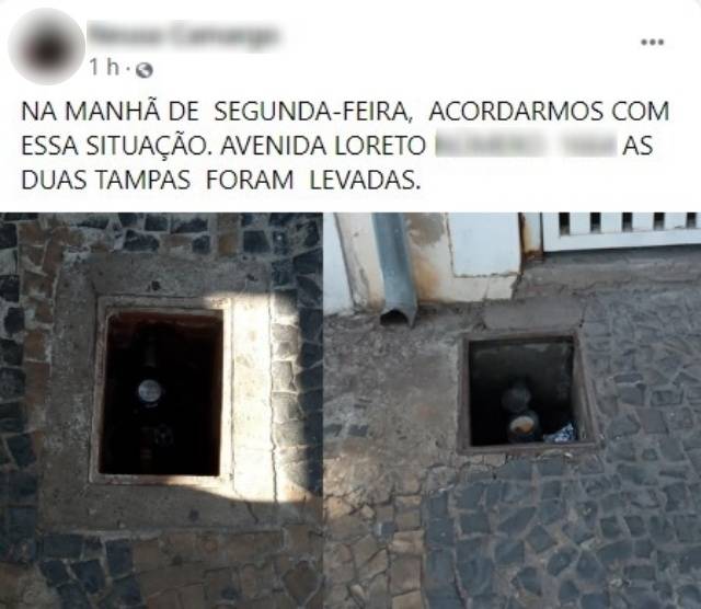 A mesma stuação foi registrada por uma moradora da Avenida Loreto, de onde ladrões furtaram duas tampas. Em sua maioria, esse tipo de tampa é de ferro fundido, e é vendido facilmente como ferro velho.