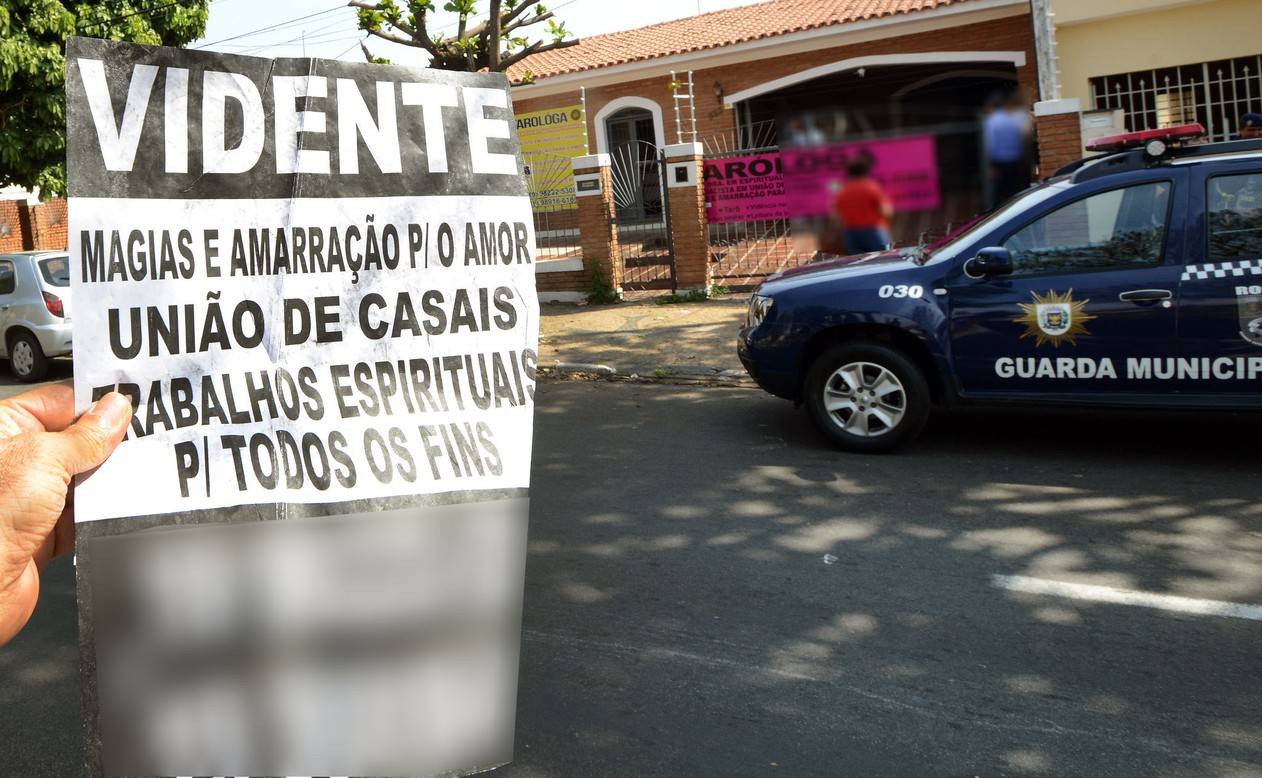 Uma taróloga recebeu multa de R$ 3 mil em Campinas (SP), nesta quarta-feira (11), por colar cartazes em postes com anúncios para serviços de “vidência”, “amarração amorosa”, búzios, tarôs e leitura na borra de café. Ela foi autuada no Jardim do Trevo, onde faz atendimentos.