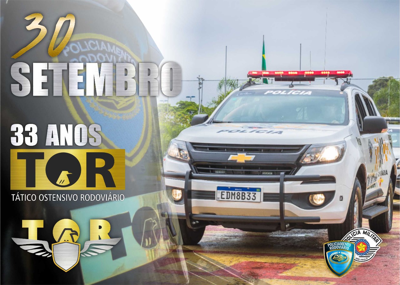Neste dia 30 de setembro de 2020, em comemoração aos 33 anos de criação dessa modalidade de Policiamento Tático, serão realizadas pelas equipes TOR, em todo o Estado de São Paulo, em especial nas rodovias que circundam esta Capital (Rodovia Presidente Castello Branco, Rodoanel Mario Covas e outras), inúmeras ações visando o controle dos indicadores criminais e a melhoria na sensação de segurança dos usuários das rodovias.