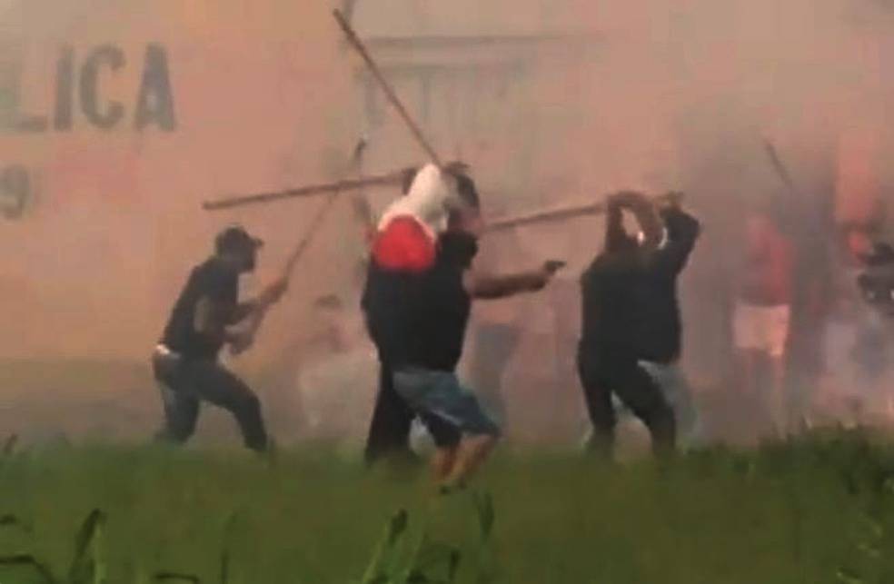 Torcedores do São Paulo e do Santos entraram em confronto na tarde deste domingo (10) na região da Avenida John Boyd Dunlop, em Campinas (SP). Vídeo mostra grupos armados com pedaços de paus e rojões. Em um dos momentos, é possível observar que um dos indivíduos está armado.
