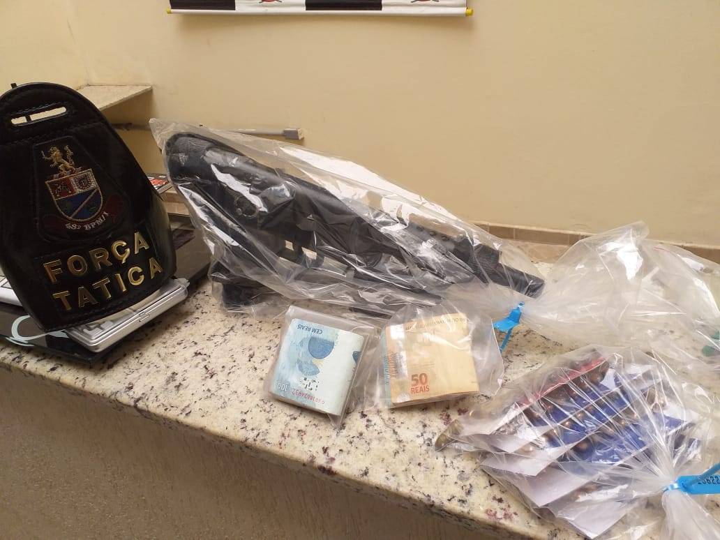 Na residência a equipe encontrou drogas, dinheiro, rádios comunicadores, munições.