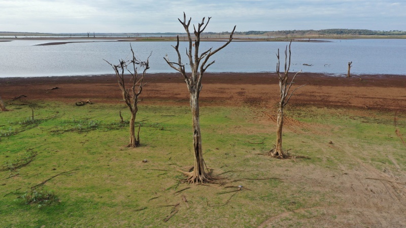 Onde normalmente estaria a 20 metros de profundidade, hoje se vê pequenas lagoas e fios d'água, que mostram o nível da represa da hidrelétrica de Marimbondo em Guaraci, interior de São Paulo. A represa pertence à barragem da hidrelétrica de Marimbondo na divisa entre São Paulo e Minas Gerais. Nível da represa do Rio Grande em Guaraci, está com 6.73% da sua capacidade de vazão. No começo do período de estiagem. Segundo site do ONS.