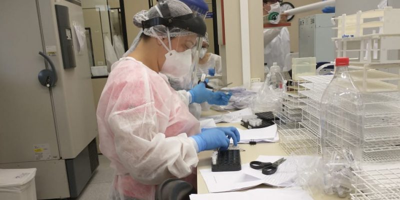 Por meio da técnica padronizada no Laboratório de Biologia Molecular do Hospital das Clínicas da Faculdade de Medicina de Botucatu (HCFMB-Unesp), sob responsabilidade da professora Rejane Grotto, a saliva da cavidade oral é coletada e utilizada como fonte para constituição do pool de até 15 pessoas, em periodicidade variável conforme o risco ocupacional.