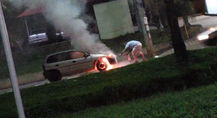 Um carro modelo GM/Corsa pegou fogo na noite deste domingo (15), próximo ao Posto Tiger, na Avenida Dona Renata em Araras (SP). O Corpo de Bombeiros (vídeo abaixo) foi acionado e as chamas foram contidas.