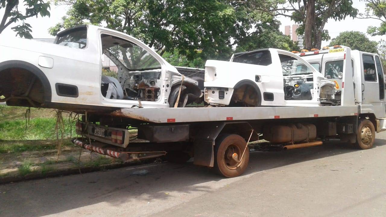 As duas carcaças foram removidas pelo guincho Magrão e apresentadas no plantão da Central de Polícia Judiciária.