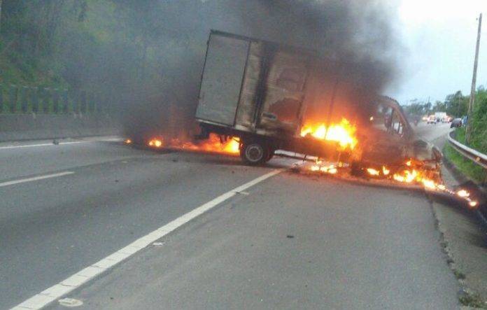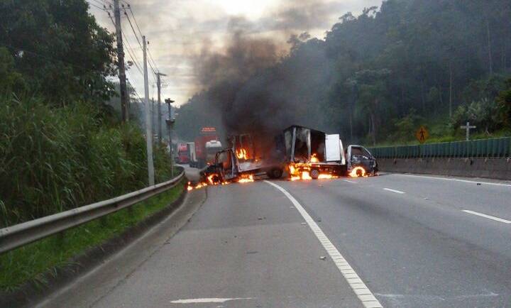 Uma tentativa de roubo a carro forte deixou veículos incendiados e trânsito interditado no sentido São Paulo da rodovia Mogi-Dutra no começo da noite desta segunda-feira (22), de acordo com as primeiras informações da Polícia Militar.