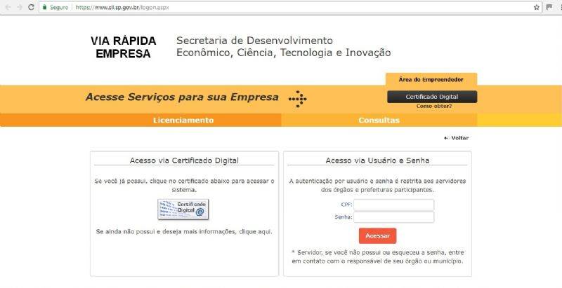 Para se cadastrar no sistema Via Rápida Empresas, o empreendedor deve procurar um contador ou por meio da MEI (Micro Empresa Individual), pelo site da Secretaria de Desenvolvimento Econômico, Ciência, Tecnologia e Inovação – www.sil.sp.gov.br ou diretamente pelo site da Prefeitura de Araras – www.araras.sp.gov.br, na aba “Serviços”, opção “Via Rápida”.