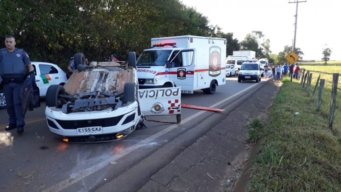 Uma viatura da Polícia Militar de Monte Mor (SP) capotou na tarde desta terça-feira (18), deixando os dois agentes que estavam dentro do veículo com ferimentos moderados. Segundo a corporação, o caso oorreu por volta de 16h30 na estrada que liga a cidade à Indaiatuba (SP).