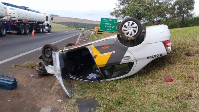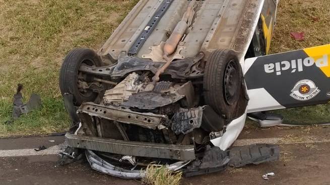 Nesta segunda-feira (04) uma viatura da Polícia Militar Rodoviária acabou capotando no km 206 da Rodovia Washington Luiz em Itirapina (SP).