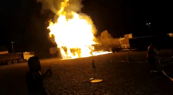 Segundo testemunha, um caminhão com produto perigoso vazando veio a estacionar em área descoberta do posto de combustíveis. Após parar o caminhão, este veio a se incendiar e em seguida explodir, vindo a incendiar cerca de 10 outros caminhões e veículos leves.
