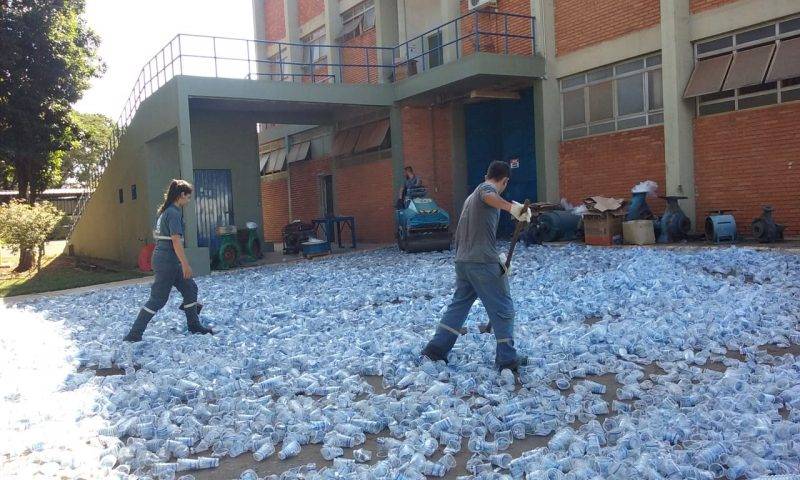 Tratando-se de água tratada, o Saema atendeu às ordens da Vigilância e destruiu os copos para envase, lacrando a máquina de envase e encerrando assim o serviço de envase de de água.