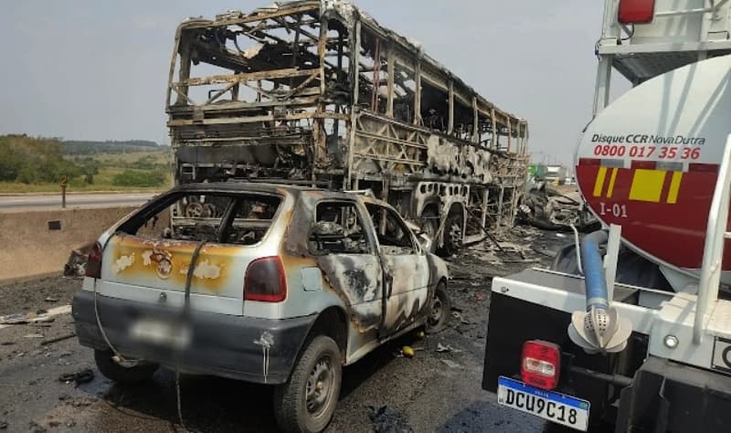 Devido ao impacto, um dos veículos de passeio e o ônibus pegaram fogo. O trânsito sentido São Paulo foi interditado para limpeza da pista até ser totalmente liberado às 13h. A pista sentido RJ foi liberada às 11h, porém o trânsito na pista sentido SP fluiu por uma via de acesso lateral.