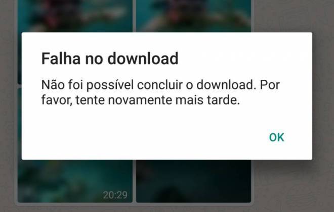 Você está tentando baixar uma foto ou vídeo que recebeu por WhatsApp, mas a mensagem acima insiste em aparecer na tela, impedindo o download da mídia? Há algumas possíveis soluções para esse erro descritas no fórum do próprio WhatsApp.
